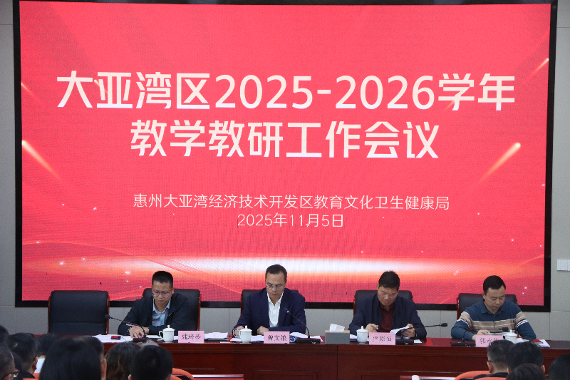 11月5日上午,大亚湾开发区2025-2026学年教学教研工作会议在大亚湾区实验学校召开。区教育文化卫生健康局相关领导,区教育事业发展中心全体教研员,全区中小学党组织书记、校长及分管教学教研的领导参加会议。