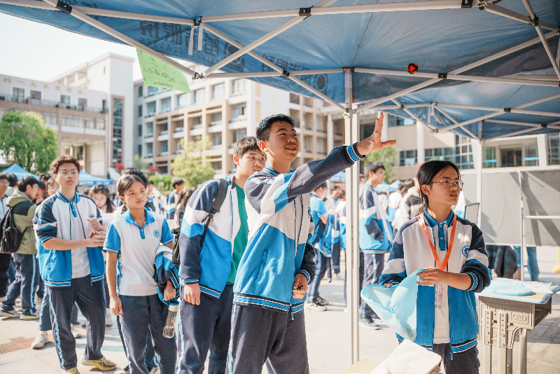 在华罗庚广场中央,语文、数学、物理、化学等多个学科的活动在这里开展,形式多样,让学生在趣味挑战中拓宽知识边界。